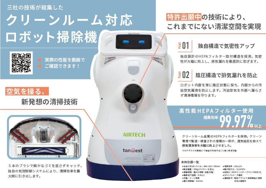 展示会では11月19日に発売となる「クリーンルーム対応ロボット掃除機」を展示します。